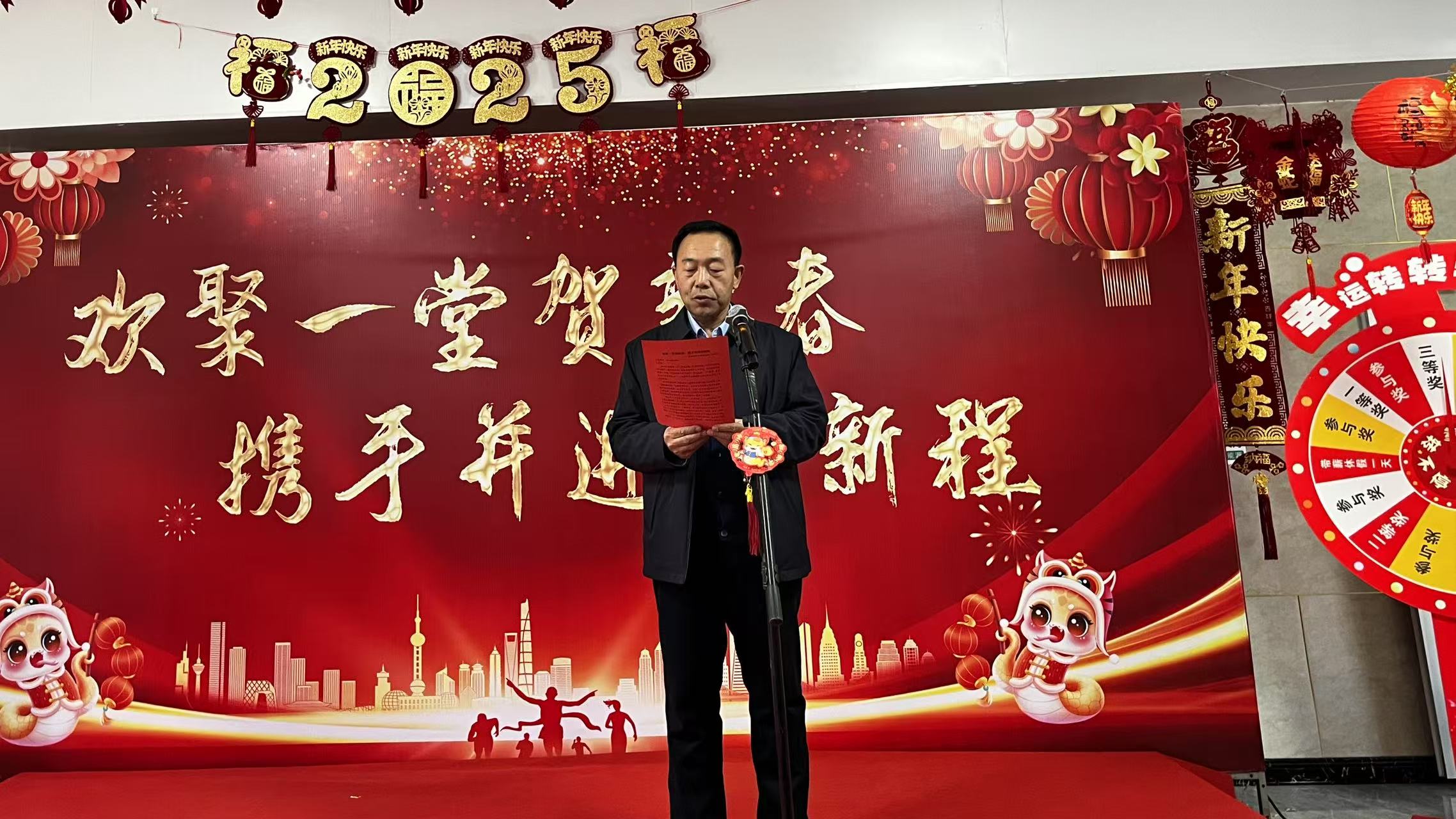 活动正式开始前集团董事长王克军进行了致辞。他首先对全体员工在过去一年中的辛勤付出表示衷心感谢,并高度肯定了大家所取得的优异成绩。他强调,过去的一年里,乐天使在市委、市政府的坚强领导下,广大职工担当作为、干事创业,用必胜的信念和不懈的努力,经受住了各种困难和挑战,以实际行动诠释了“务实、惠农、创新、超越”的农投精神,圆满地完成了上级机关下达的年度目标任务。他指出2025年要雷厉风行、真抓实干,跑出高质量发展的“加速度”。最后,王克军董事长向全体员工致以新春的祝福,希望大家在新的一年里健康平安、阖家幸福。
